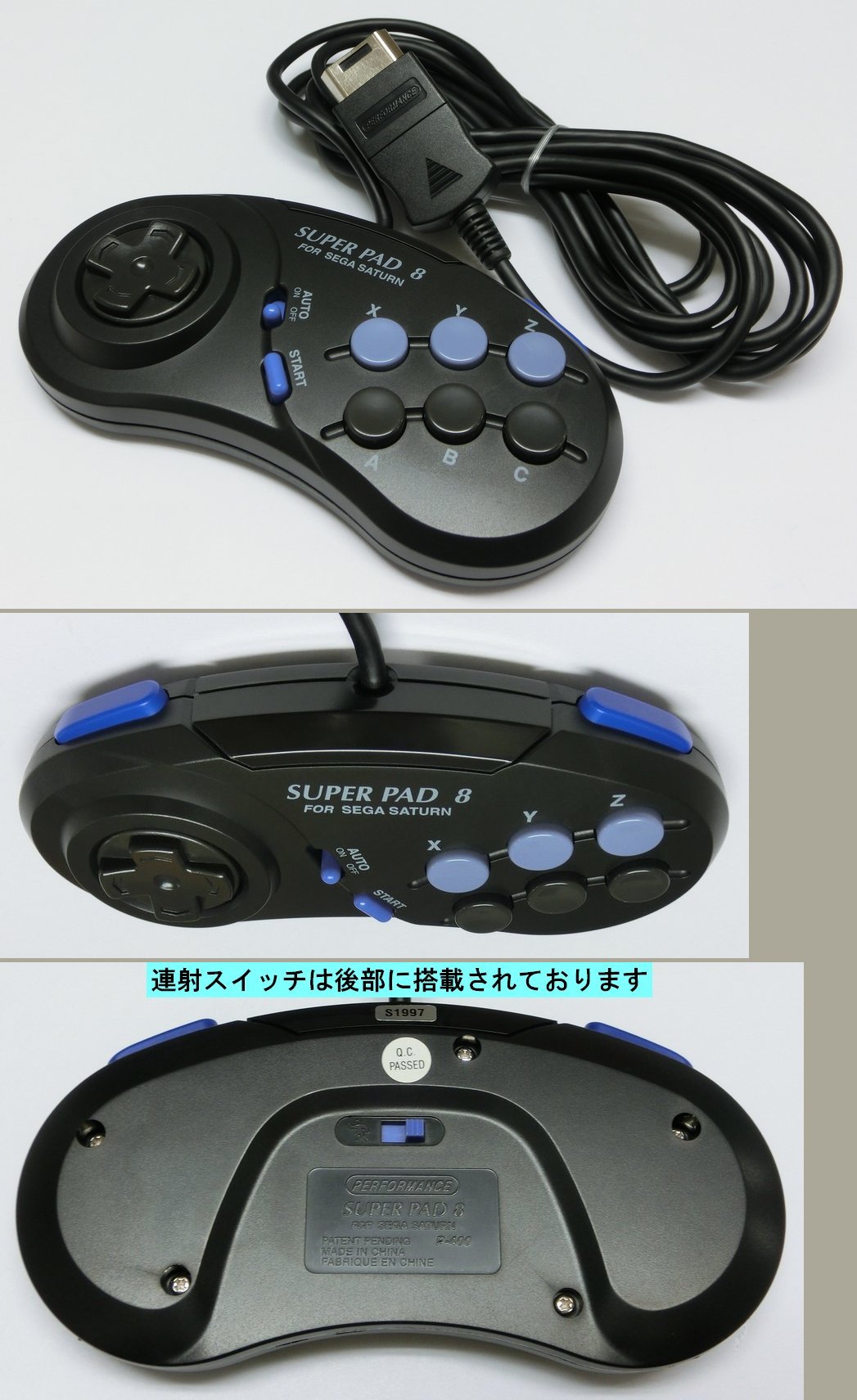 SS(セガサターン)用の多機能コントローラーです。連射・スロー機能が搭載されております。連射は[AUTO]スイッチを